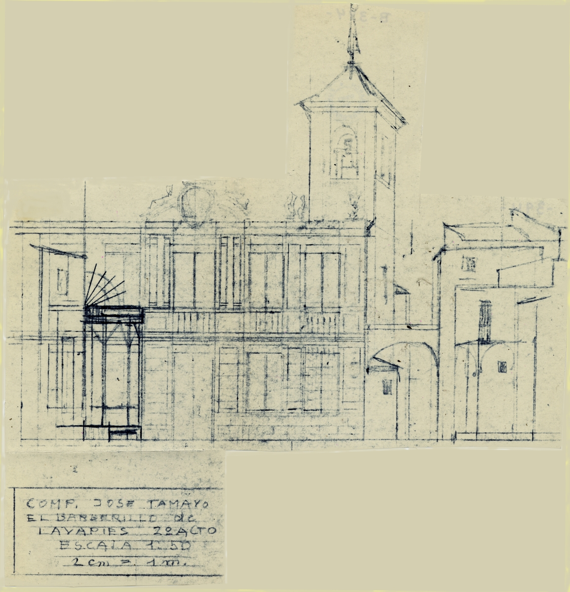 Nota: Fotocopia de alzado de decorado para el 2º acto. Escala 1:50.; En el margen inferior izquierdo: "Comp. José Tamayo"; La obra fue estrenada en el Teatro de la Zarzuela (Madrid), el 18 de diciembre de 1874.; Mención de responsabilidad creada a partir del contenido del documento.