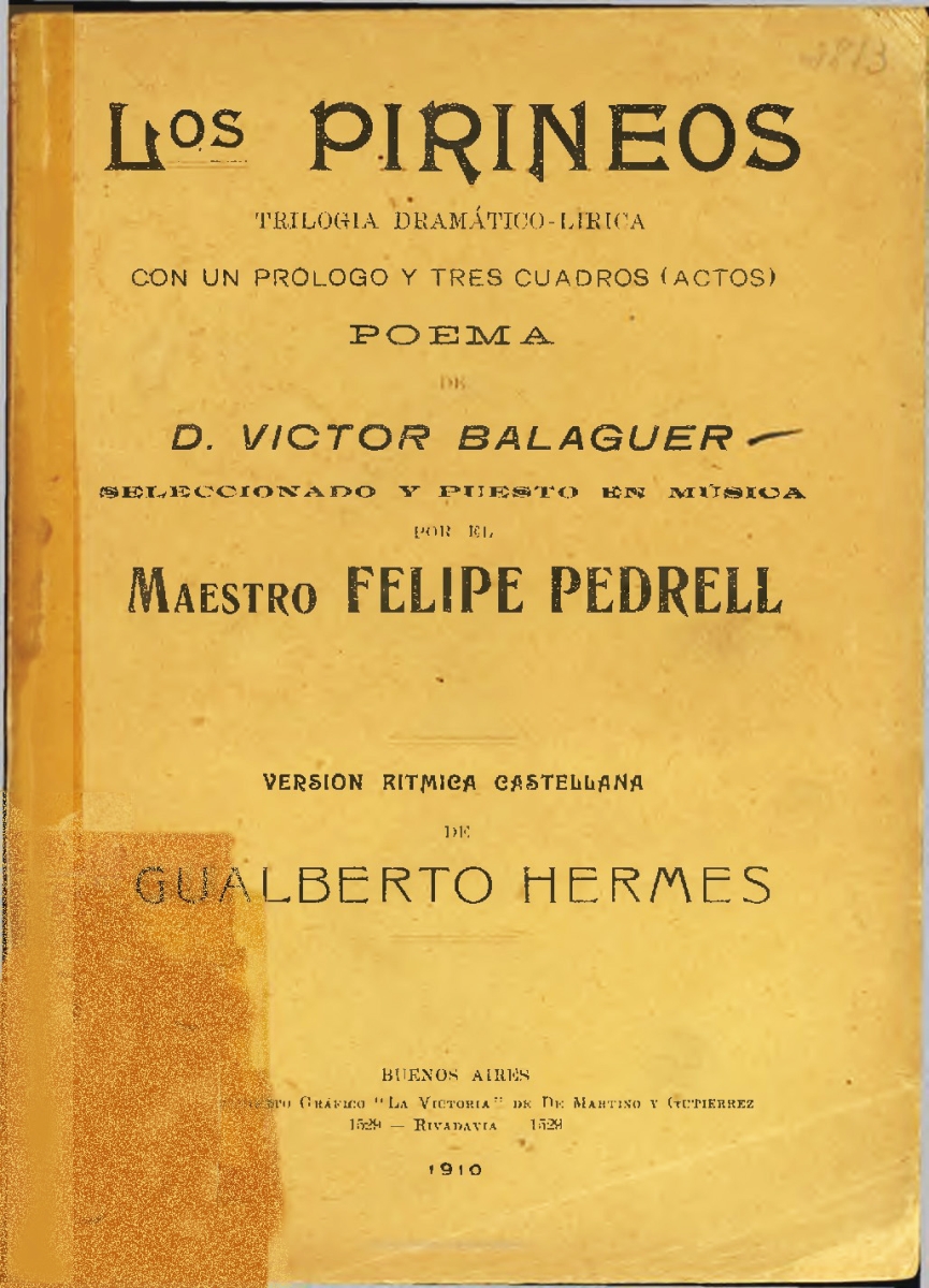 - Título: Los Pirineos:trilogía dramático-lírica con un prólogo y tres cuadros (actos)