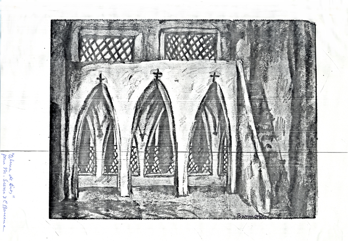 Nota: Fotocopia de boceto firmado por el autor.; Mención de responsabilidad creada a partir del contenido del documento.; La obra fue estrenada en el Teatro Cómico (Madrid), el 17 de diciembre de 1907.; En el margen inferior izquierdo, escrito a bolígrafo: "Alma de Dios, para M. Sierra y C. Bárcena"