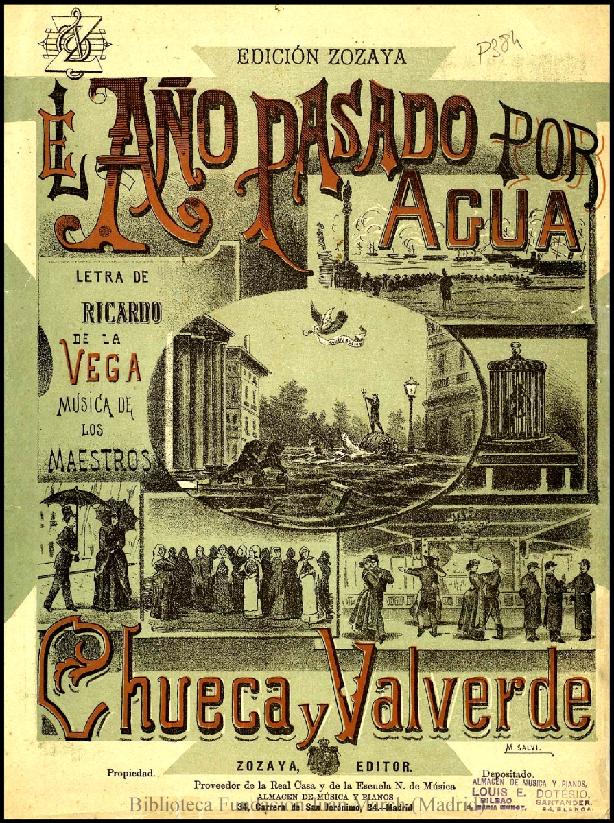 - Nota: Música para dúo vocal y piano.; Estreno: Teatro de Apolo (Madrid), 1 de marzo de 1889.; Cubierta litografiada a color, con motivos de la zarzuela. Litografía firmada: "M. Salvi"
