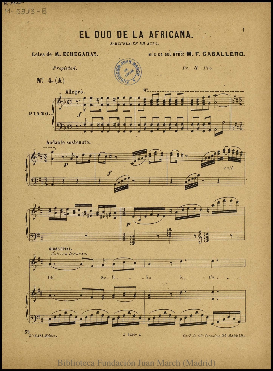 - Título: El dúo de la africana:N. 4 (A) : zarzuela en un acto