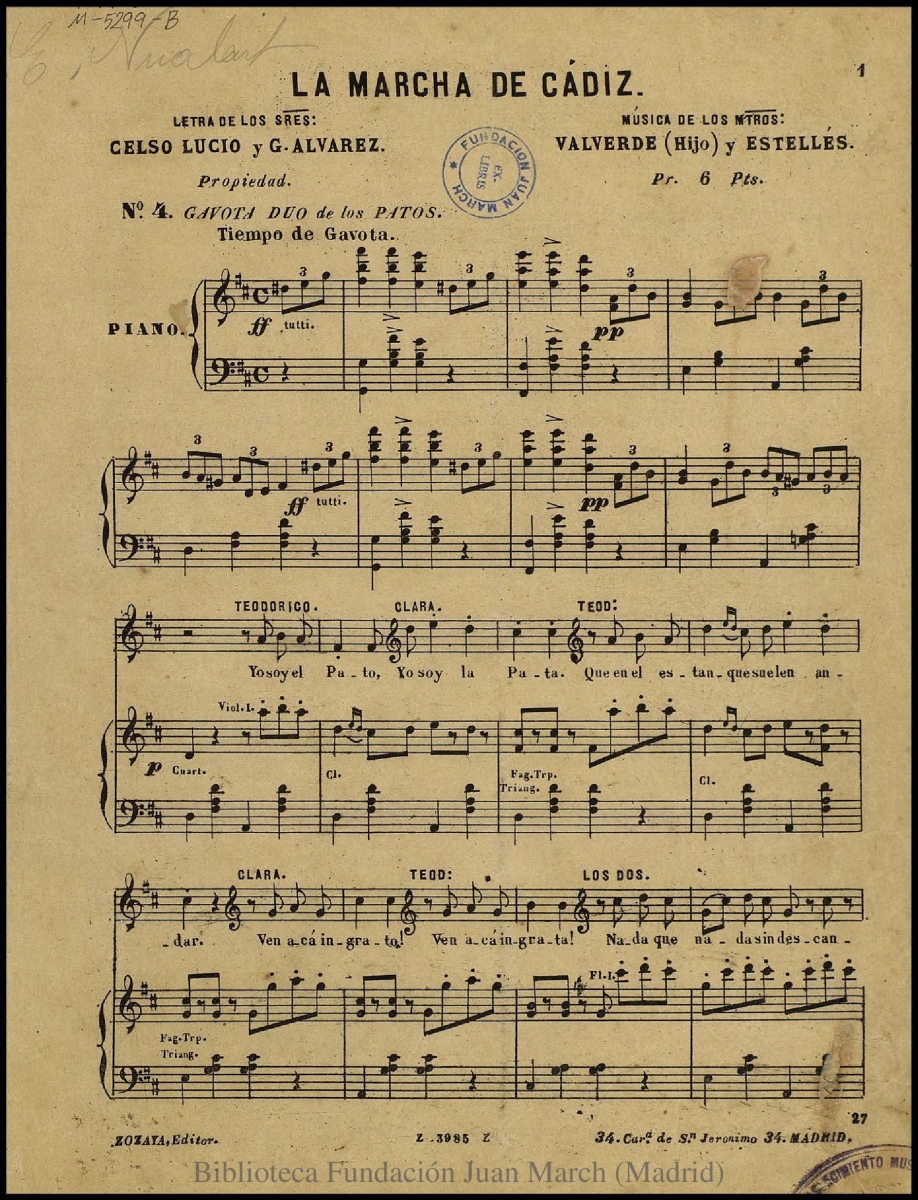 Título: La marcha de Cádiz:N. 4, Gavota : Dúo de los patos