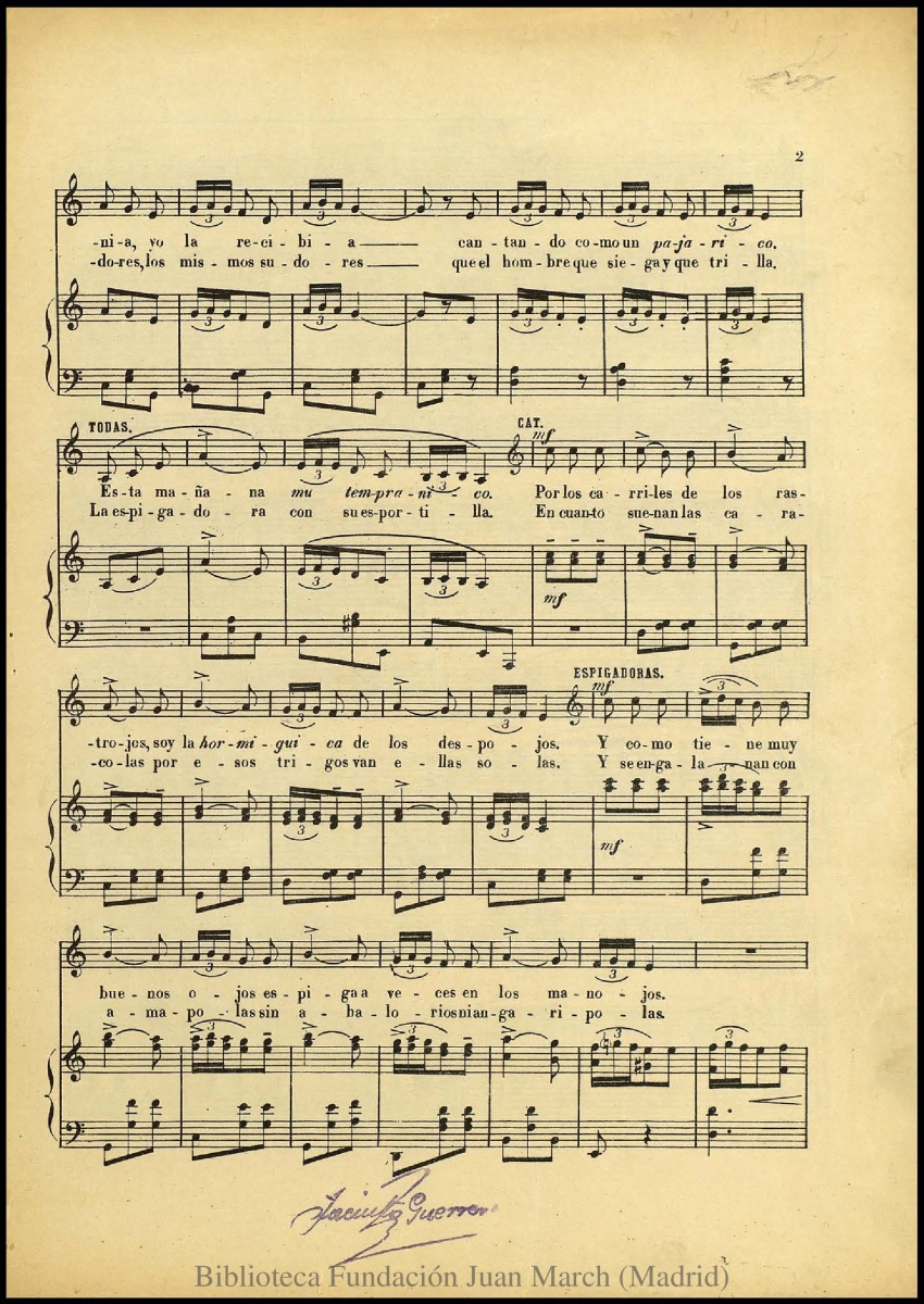 - Materias: Zarzuelas - Fragmentos - Partituras vocales con piano; Coros (Voces de mujeres) con piano - Partituras vocales; Zarzuelas; Teatro lírico