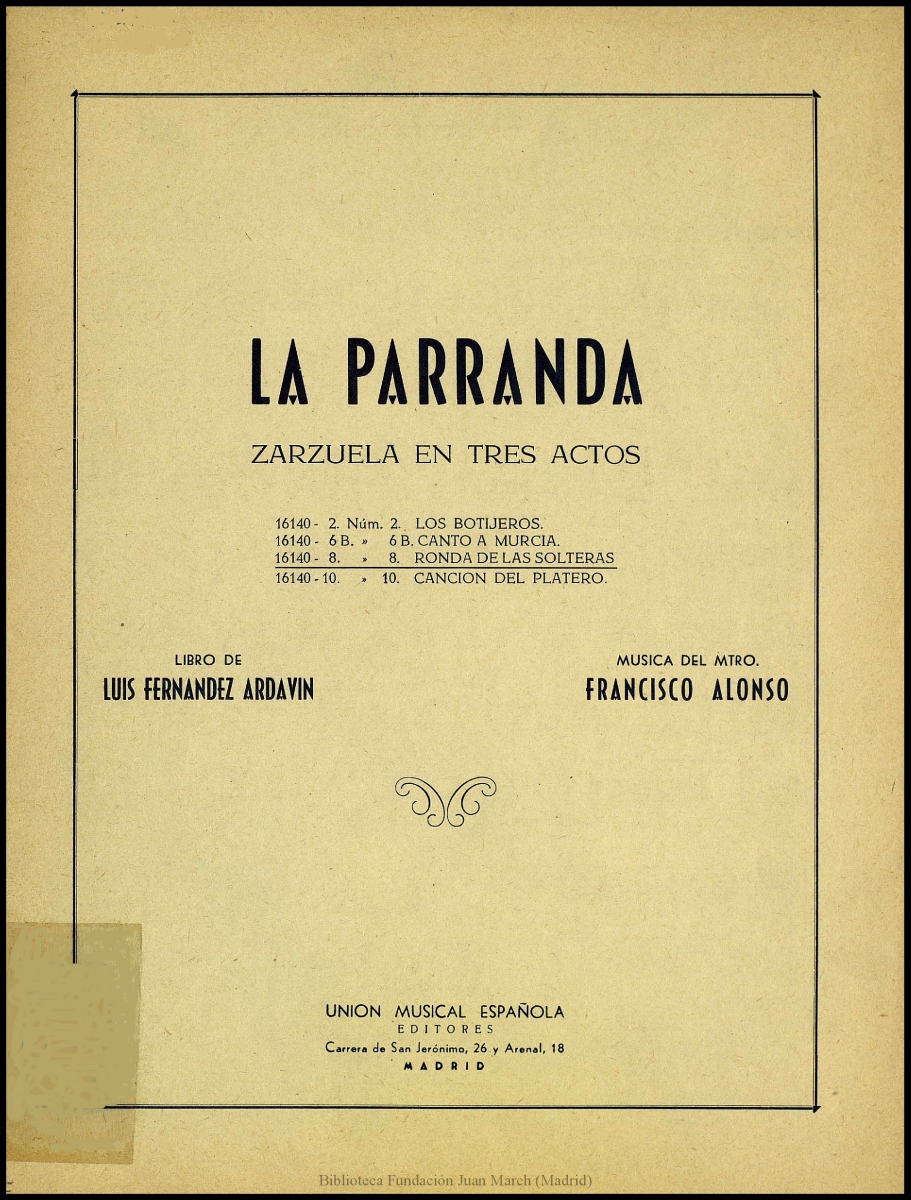 - Editores: Madrid: Unión Musical Española, cop. 1928