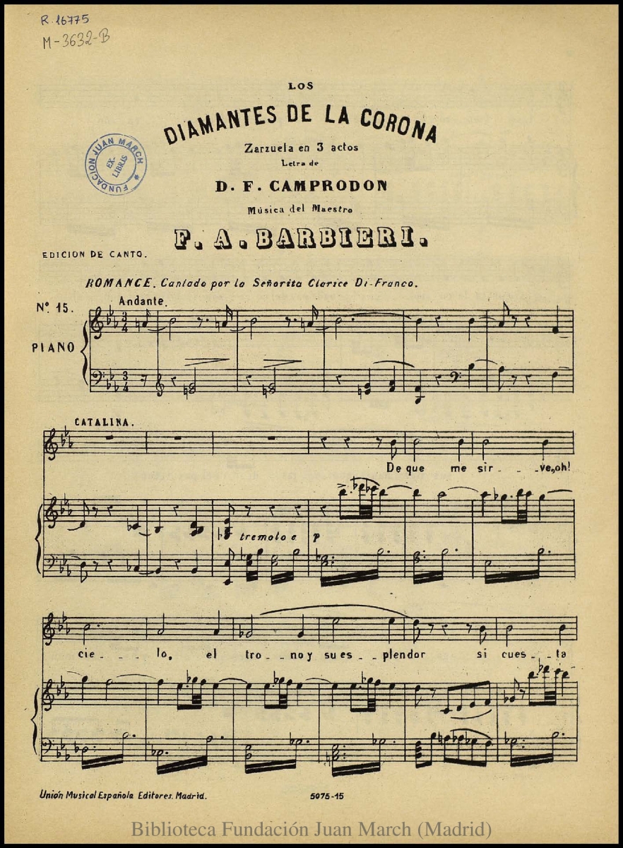 - Título: Los diamantes de la corona:zarzuela en tres actos : N. 15, Romance