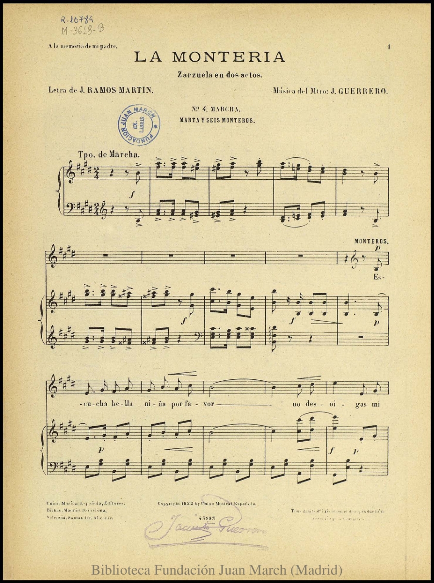 - Editores: Madrid: Unión Musical Española, cop. 1922