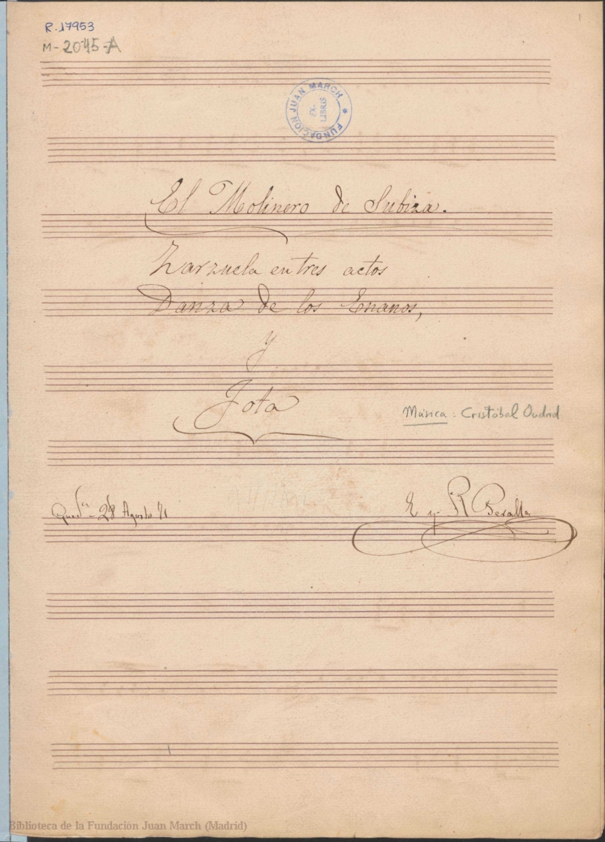 Música para piano.; Música manuscrita. El nombre del compositor ha sido añadido posteriormente a lápiz. En la portada: "E y R. Peralta" [posible copista]; En la portada: "28 Agosto 71"; Foliación moderna a lápiz en el márgen superior derecho de los rectos.; Estreno: Teatro de la Zarzuela (Madrid), 21 de diciembre de 1870.