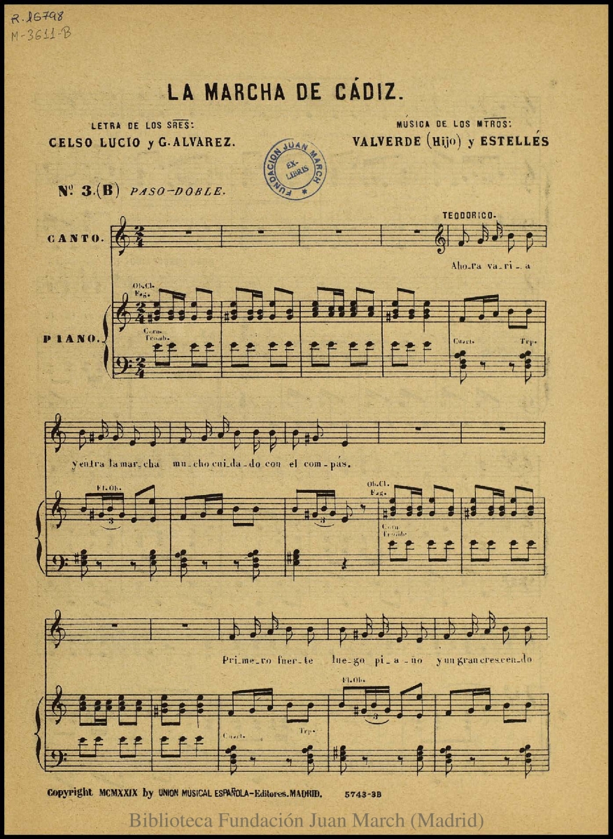 - Título uniforme: La marcha de Cádiz. Ahora varía y entra la marcha