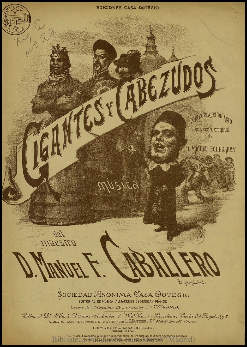 Nota: Música para piano.; Incluye el texto de la obra, indicado sobre el sistema del piano.; Estreno: Teatro de la Zarzuela (Madrid), 29 de noviembre de 1898.