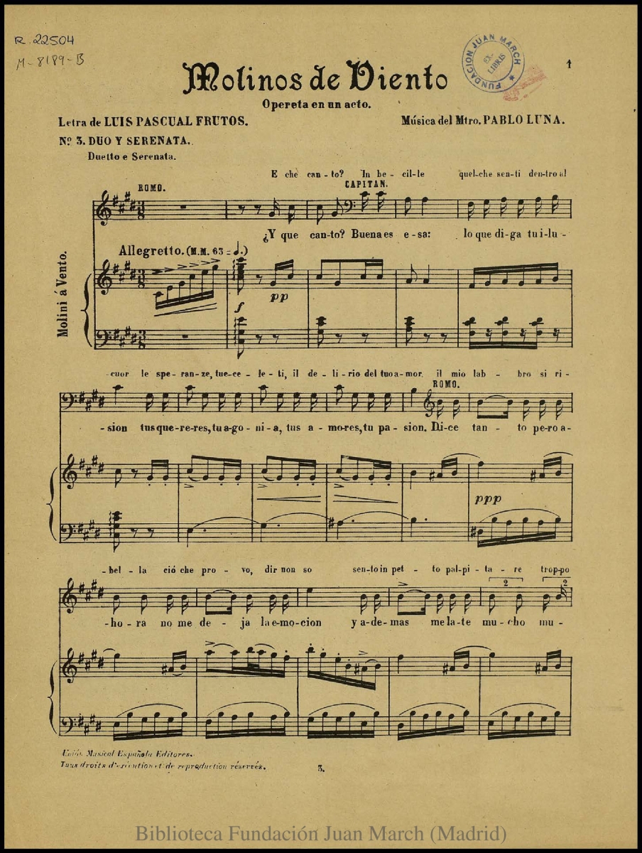 - Título: Molinos de viento:N. 3, Dúo y serenata : opereta en un acto
