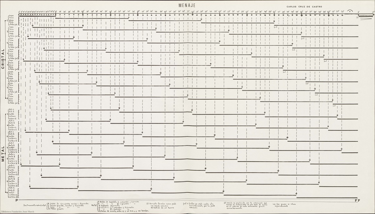 Memoria final (España; Artes Plásticas; 1970); "Ejemplar n. 2. De esta carpeta - cuya edición se ha realizado con ayuda de la Fundación Juan March- que contiene seis serigrafías realizadas por Abel Martín, de dibujos programados por J. E. Arrechea, texto de Enrique Delgado y partituras de Ramón Barce, Claudio Prieto, Agustín González, Francisco Estévez, Francisco Cano y Carlos Cruz de Castro, se ha hecho una tirada limitada de cincuenta ejemplares numerados y se acabó de imprimir el día 3 de enero del año 1971, en Artes Gráficas Luis Pérez, San Bernardo, 82, Madrid."; En f. [1]: "asesor musical: juventudes musicales de Madrid"; Incluye un texto de Enrique Delgado, firmado en Madrid, septiembre de 1970: "Cada generación tiene su mentalidad y su postura ante la vida la nuestra es de avanzadilla, esto implica evolución, cambio, investigación. Este libro es consecuencia de dicha postura. [...]"; Reproduccion no permitida, salvo autorización expresa del autor o sus herederos.; Memoria final de beca de la Fundación Juan March.; Serigrafías.