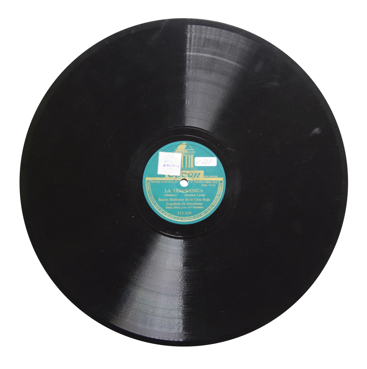 Nota: Música para banda.; Etiqueta verde con el logo de Odeon en letras doradas.; En ambas etiquetas, sellos de derechos de reproducción.; Sellos de derechos de reproducción en ambas etiquetas.