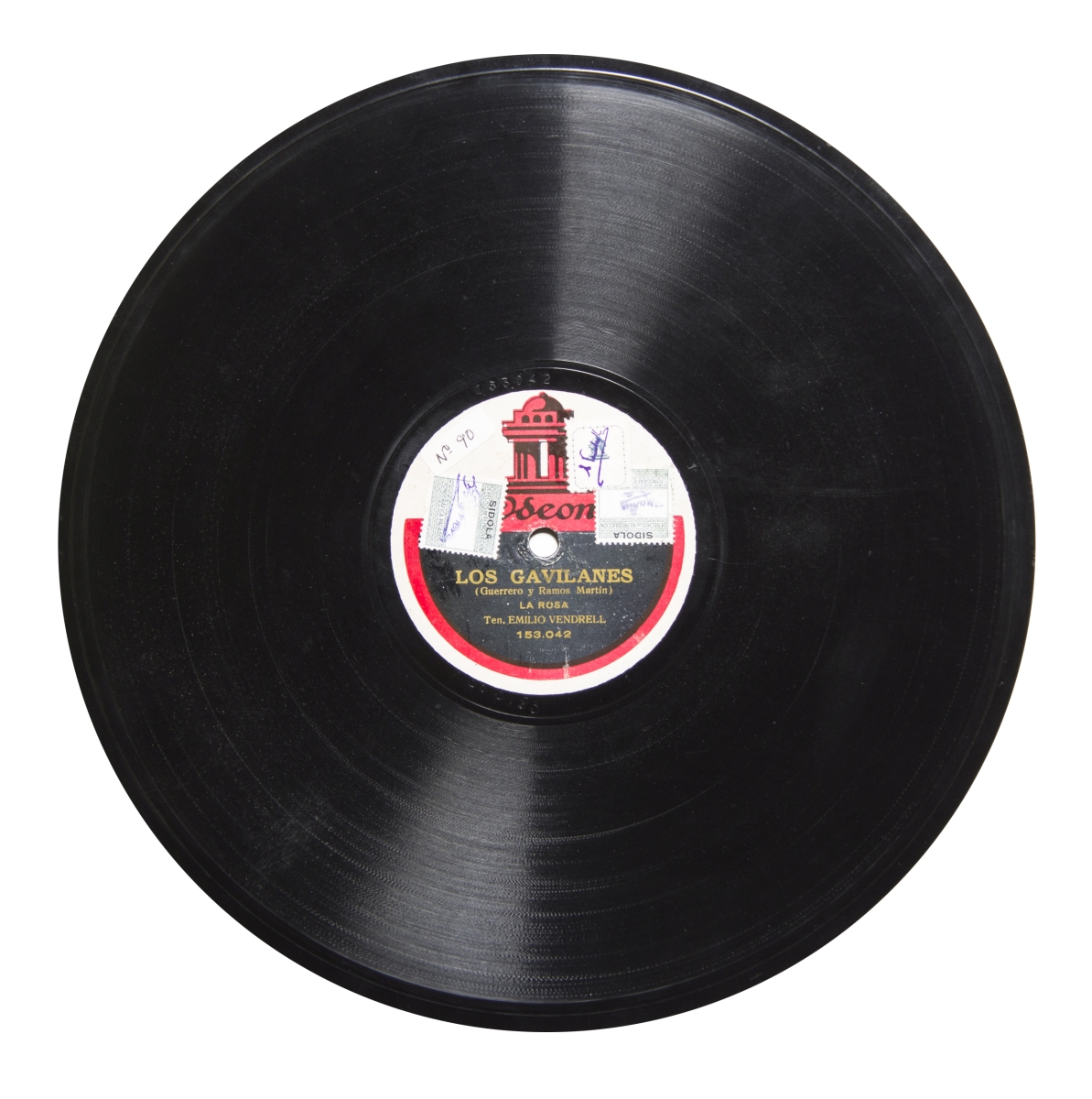 Música para tenor y orquesta.; Etiqueta con el logo de Odeon en rojo sobre fondo blanco, y el espacio para las letras de color dorado sobre fondo negro.; Estreno: Teatro de la Zarzuela la noche del 7 de diciembre de 1923.; Dos sellos-timbre verde y blancos con la inscripción: "SIDOLA. Derechos de reproducción fonográfica pagados" con las firmas de Guerrero y Ramos Martín; 1 sello con el fondo blanco y el logo de Odeón en azul con firma ilegible. Todos ellos en ambas caras.; Catálogo General Discos Odeón y Fonotipia, 1927, p. 15; Catálogo General Discos Odeón y Fonotipia, 1927, p. 15