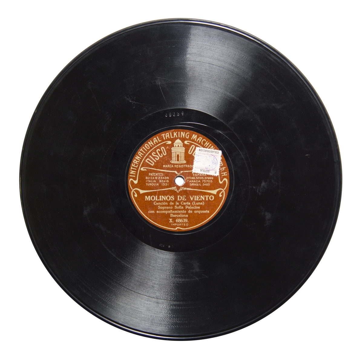 Música para soprano, barítono y orquesta.; Etiqueta marrón con el logo de Odeón en dorado y letras con las siguientes inscripciones: "International Talking Machine, Cº.m.b.H.", "Disco Odeón", "Marca registrada", "Patentes: Suiza 23496, Italia 92416, Turquía 1331, España 27399, 32105, 37999, Canadá 75705, Brasil 3465", "Barcelona", "Imported"; Estreno: Teatro Cervantes de Sevilla el 2 de diciembre de 1910.; Cara A: Sello-timbre de color violeta y blanco "SIDOLA. COLABORACION. Derechos de reproducción fonográfica pagados" con firma en tinta azul ilegible.; Impreso en Barcelona; Catálogo general de discos dobles españoles "Odeón", 1922, p. 27; Catálogo general de discos dobles españoles "Odeón", 1922, p. 27