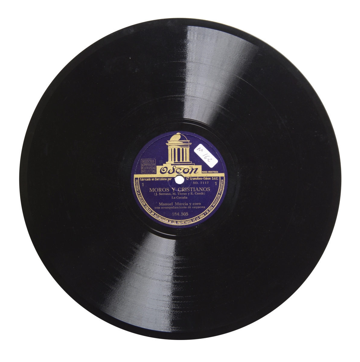 Música para solistas, coro y orquesta.; Etiqueta azul con el logo de Odeón en dorado y letras con las siguientes inscripciones: "Odeón", "Marca registrada", "Fabricado en Barcelona por la Cª Gramófono-Odeón, S.A.E", "Reservados los derechos del productor fonográfico y del propietario de la obra. Prohibidas la duplicación, ejecución pública y radiación de este disco" en ambas caras.; Estreno: Teatro de la Zarzuela de Madrid el día 27 de abril de 1905.; Resto de sello-timbre en las caras 3-6.; Sistema de grabación eléctrica "W" (Western Electric) grabado en el disco; Catálogo general de discos "La Voz de su Amo", "Odeón" y "Regal", junio 1946, p. 170; Catálogo general de discos "La Voz de su Amo", "Odeón" y "Regal", junio 1946, p. 170