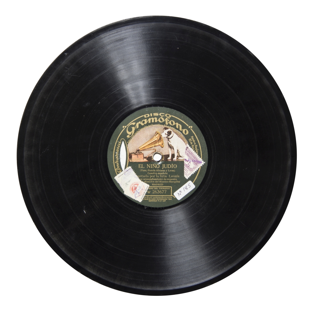 Música para soprano, barítono y orquesta.; Cara A: etiqueta verde con el logo de "La Voz de su Amo" y letras doradas con las inscripciones: "Disco Gramófono", "Palabra registra[da] nº reg[istro]. La Voz de su Amo", "Disco fabricado por la Compañía de Gramófono S.A.E Barcelona", "Cualquier alteración en esta etiqueta será perseguida con arreglo a la ley", "Contramarca", "SPANISH", "SOPRA[...]", "[NÚME]RO DEL CATÁLOGO W 263677" -- Cara B: las mismas excepto "DUET[...]", "W 264393"; Duración: 3'23" Canción española 3'19" Duetto cómico. Total: 6'42"; Fecha de publicación tomada del catálogo online de la BNE.; 3 sellos-timbre con el logo de "La Voz de su Amo", "Cía. del Gramófono S.A.E. Pagados los derechos de reproducción fonográfica. Copropiedad" con tres firmas ilegibles.; Impresionado en Madrid; Catálogo general de discos marca La Voz de su Amo, julio 1927, p. 191; Catálogo general de discos marca La Voz de su Amo, julio 1927, p. 191