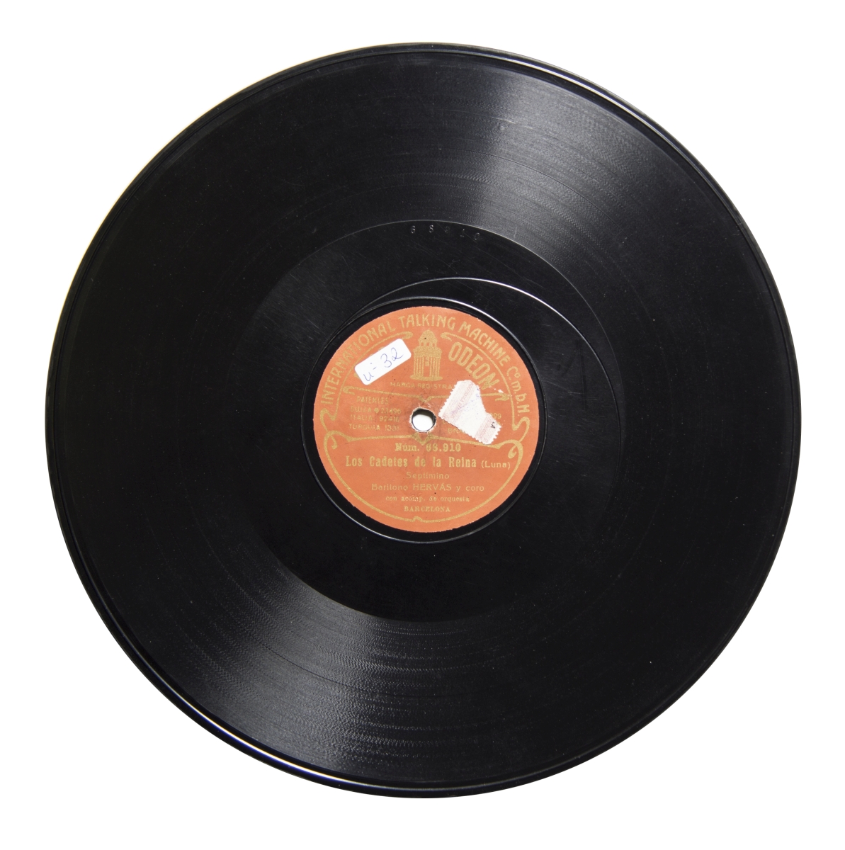 Música para voz (barítono), coro y orquesta.; Etiquetas en color teja con letras doradas y logo de Odeón dorado.; Cara A: resto de sello timbre de color violeta y blanco con la inscripción "SIDOLA. Derechos de reproducción fonográfica pagados" y firma ilegible. Cara B: restos de pegamento de algún sello-timbre.; Catálogo general de discos dobles españoles "Odeón", 1922, p. 32; Catálogo general de discos dobles españoles "Odeón", 1922, p. 32