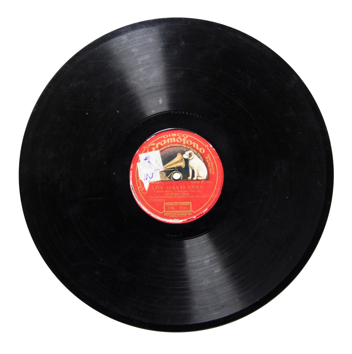 Música para tenor y orquesta.; Etiqueta roja con el logo de La Voz de su Amo, con las letras doradas y las siguientes inscripciones: "Disco Gramofono", "Palabra registrada. Nº de registro 11601", "Contra[marca]", "ESPAÑOL", "TENOR AC. ORQ", "Número del catálogo DB 850", "Cualquier alteración en esta etiqueta será perseguida con arreglo a la Ley"; Estreno (Los gavilanes): Teatro de la Zarzuela la noche del 7 de diciembre de 1923.; Estreno (Doña Francisquita): Teatro Apolo de Madrid el 17 de Octubre de 1923.; Cara A: tres sellos-timbres, tapados por un sello dorado con letras en relieve y la inscripción: "Agencia en Madrid de los discos Gramófono y Pathé. Navarro. Cruz, 17"; pegatina rectangular con el fondo blanco y una greca azul que contiene el número "40" en tinta violeta-- Cara B: 2 sellos-timbre de color verde y blanco con el logo de La Voz de su Amo, y la inscripción: "Cía del Gramófono, S.A.E. Pagados los derechos de reproducción fonográfica" y las firmas de Guerrero y Ramos.; Catálogo general de discos marca "La Voz de su Amo", julio 1927, p. 134; Catálogo general de discos marca "La Voz de su Amo", julio 1927, p. 134