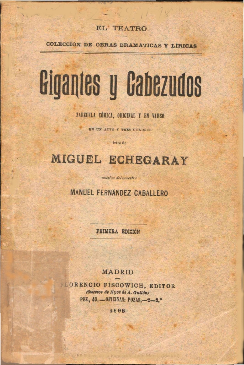 - Title: Gigantes y cabezudos:zarzuela cómica, original y en verso en un acto y tres cuadros