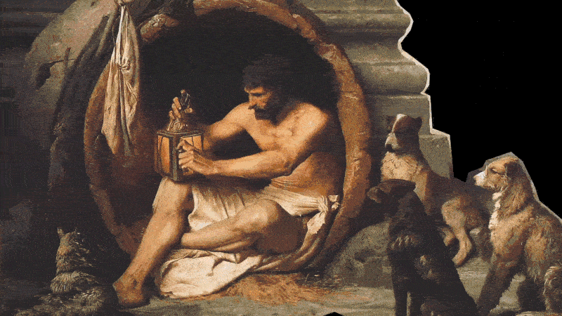 “Contra las vanas máscaras, las insignias y los prejuicios, el cínico se monta en una moral mínima, desembarazada de lastre, una ascética que conduce a la libertad y a la ‘virtud’, a contrapelo de las pautas tradicionales”